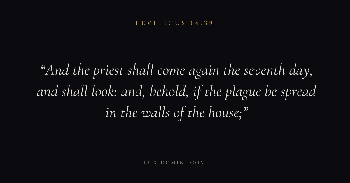 And the priest shall come again the seventh day, and shall look: and, behold, if the plague be spread in the walls of the house;