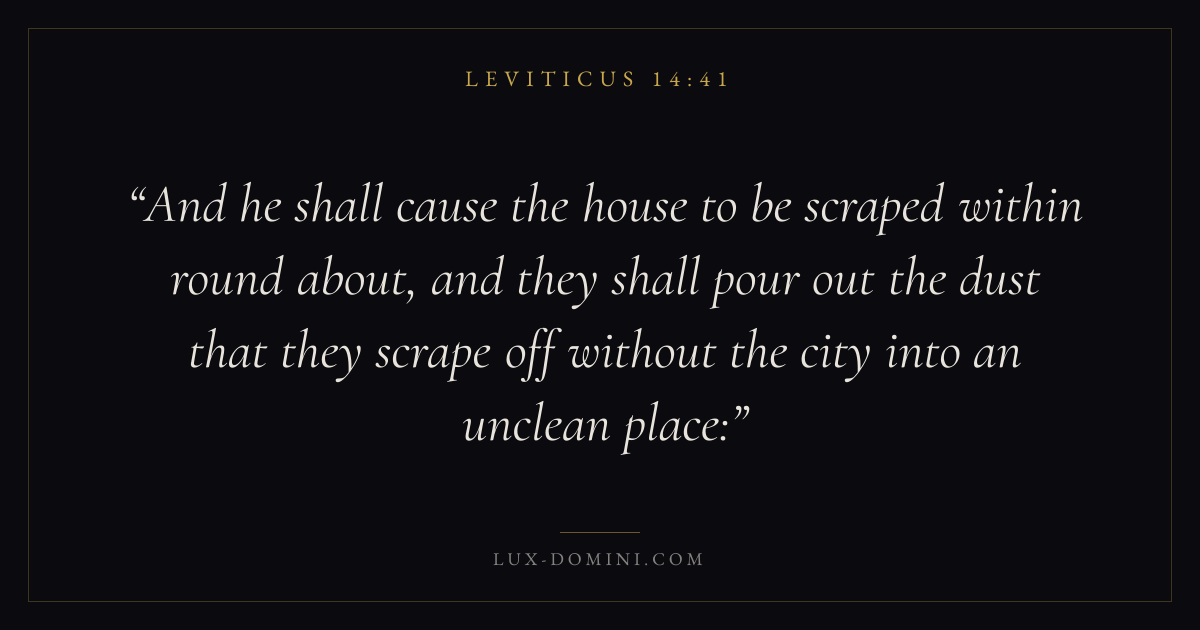 And he shall cause the house to be scraped within round about, and they shall pour out the dust that they scrape off without the city into an unclean place: