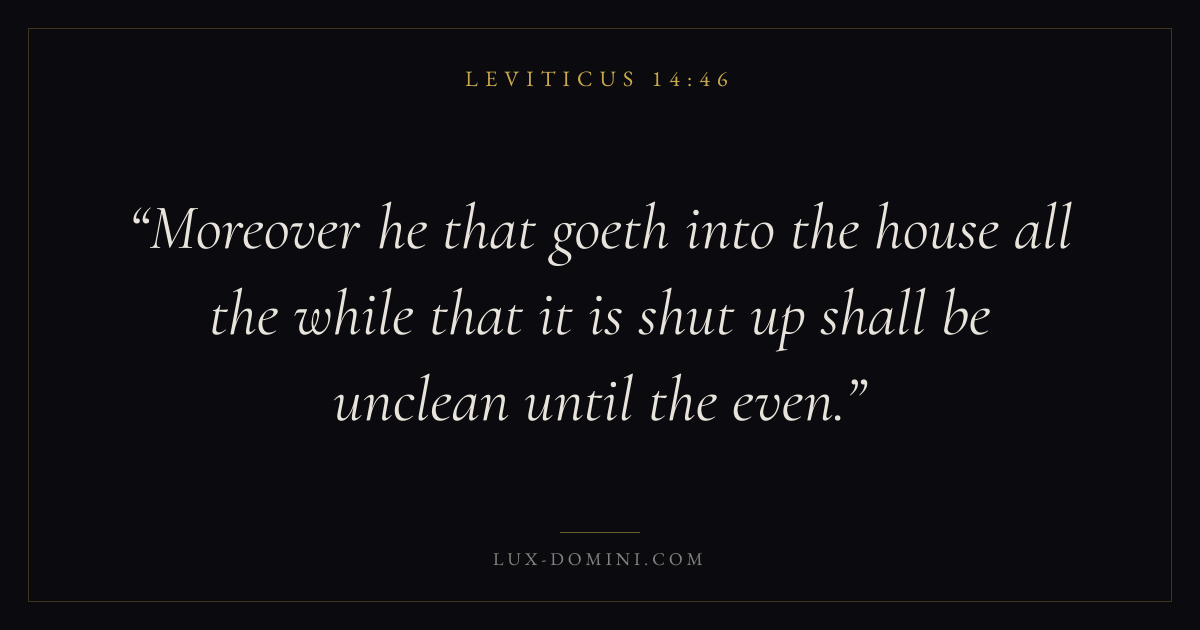 Moreover he that goeth into the house all the while that it is shut up shall be unclean until the even.