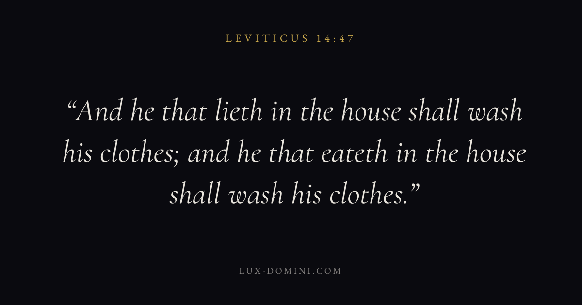 And he that lieth in the house shall wash his clothes; and he that eateth in the house shall wash his clothes.