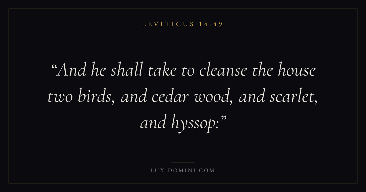 And he shall take to cleanse the house two birds, and cedar wood, and scarlet, and hyssop: