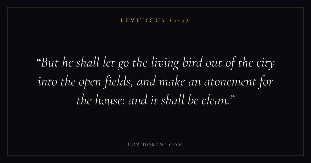 But he shall let go the living bird out of the city into the open fields, and make an atonement for the house: and it shall be clean.