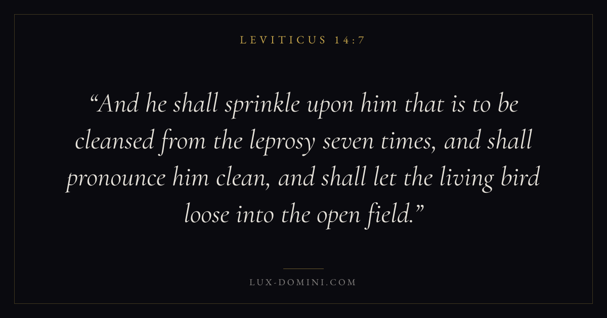 And he shall sprinkle upon him that is to be cleansed from the leprosy seven times, and shall pronounce him clean, and shall let the living bird loose into the open field.