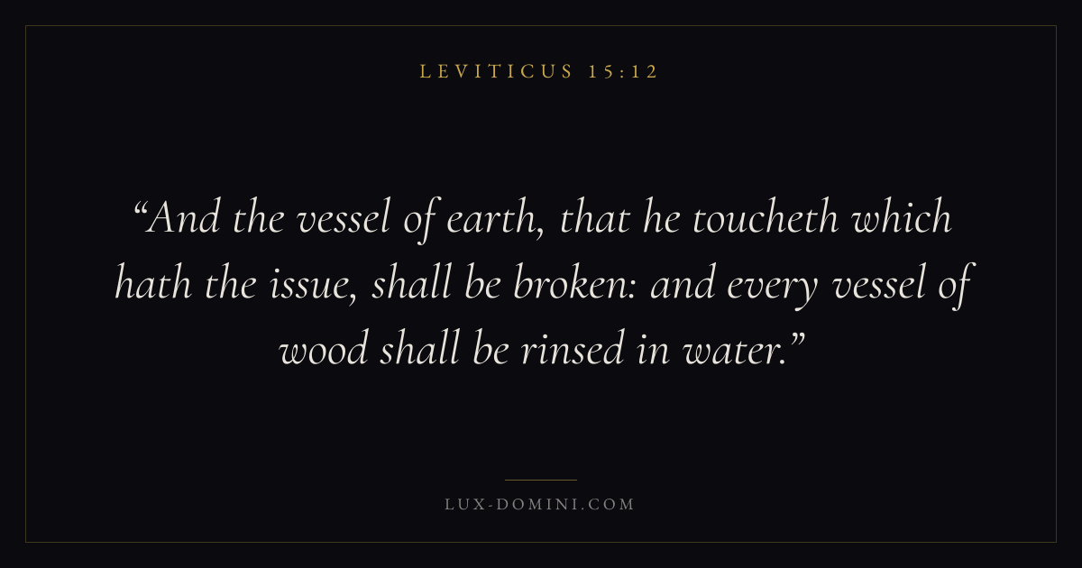And the vessel of earth, that he toucheth which hath the issue, shall be broken: and every vessel of wood shall be rinsed in water.