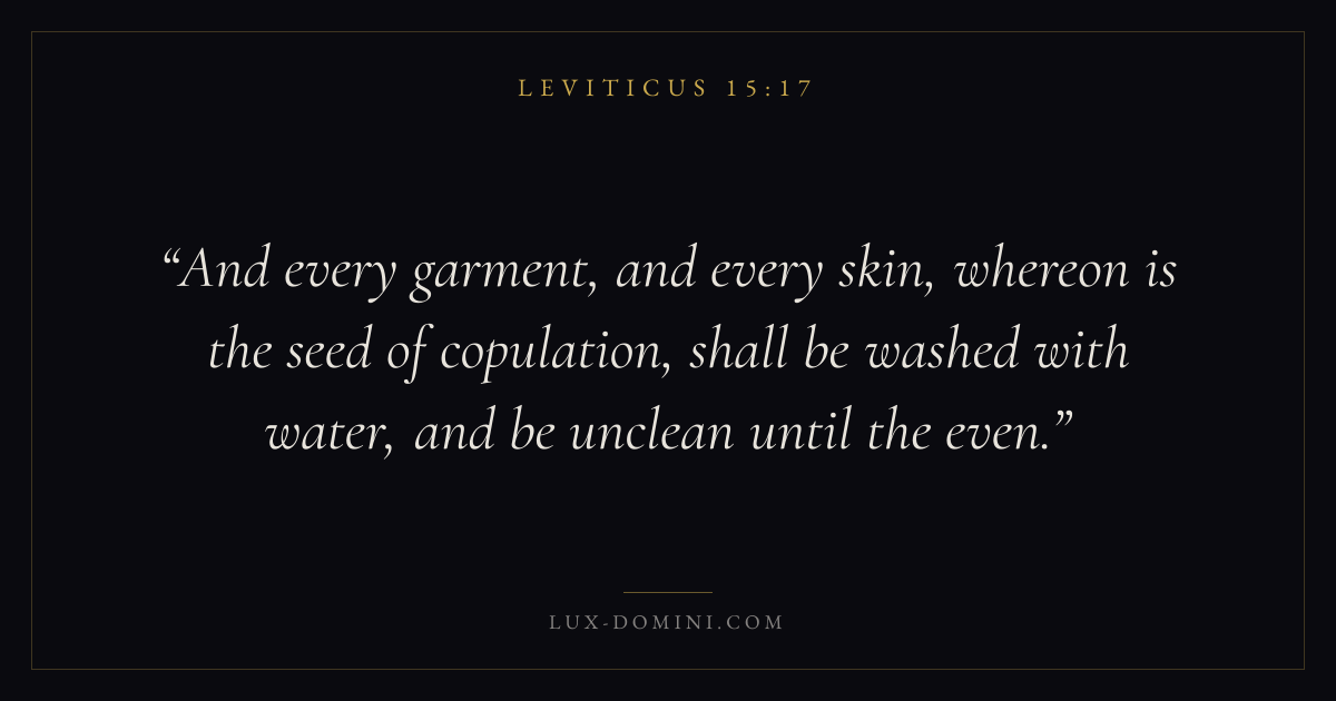 And every garment, and every skin, whereon is the seed of copulation, shall be washed with water, and be unclean until the even.
