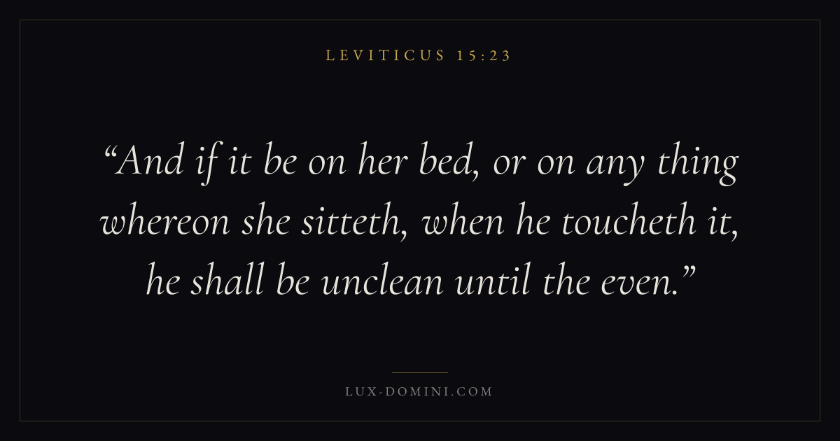 And if it be on her bed, or on any thing whereon she sitteth, when he toucheth it, he shall be unclean until the even.