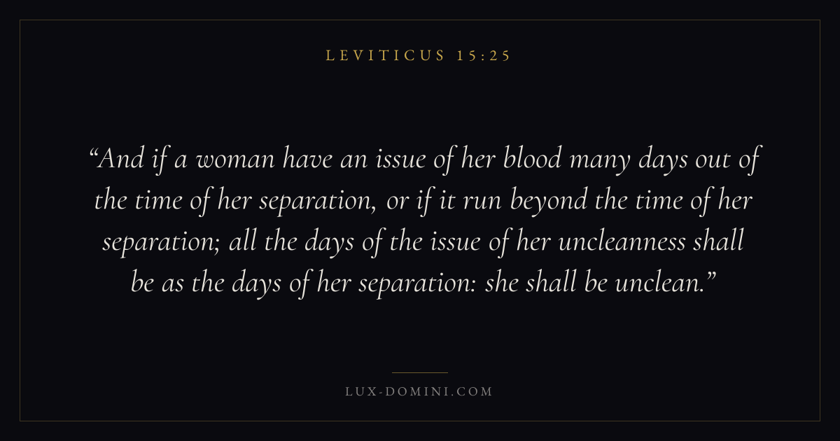 And if a woman have an issue of her blood many days out of the time of her separation, or if it run beyond the time of her separation; all the days of the issue of her uncleanness shall be as the days of her separation: she shall be unclean.