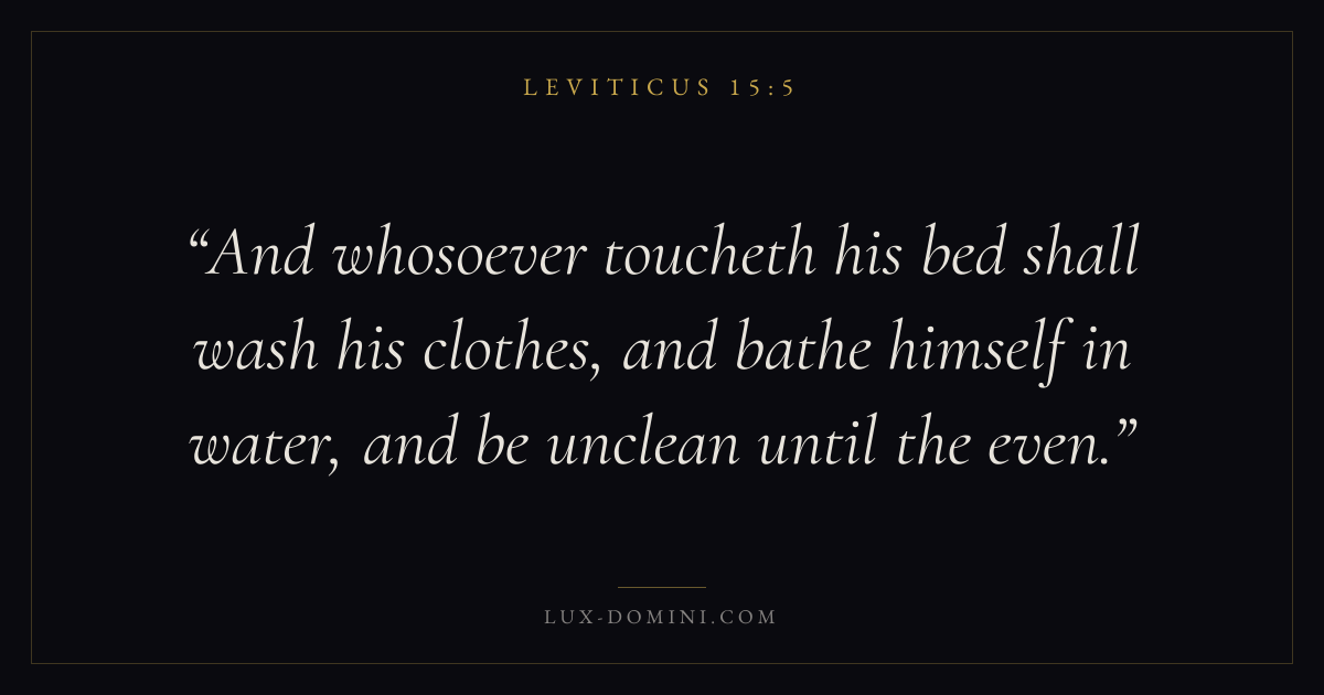 And whosoever toucheth his bed shall wash his clothes, and bathe himself in water, and be unclean until the even.