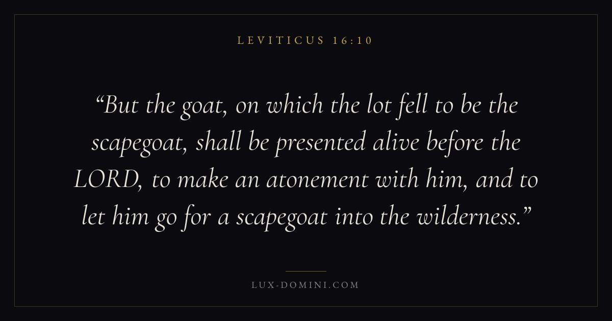 But the goat, on which the lot fell to be the scapegoat, shall be presented alive before the LORD, to make an atonement with him, and to let him go for a scapegoat into the wilderness.