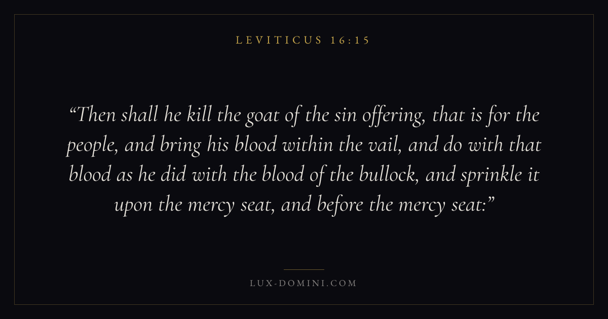 Then shall he kill the goat of the sin offering, that is for the people, and bring his blood within the vail, and do with that blood as he did with the blood of the bullock, and sprinkle it upon the mercy seat, and before the mercy seat: