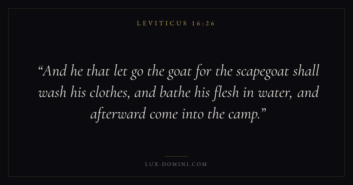 And he that let go the goat for the scapegoat shall wash his clothes, and bathe his flesh in water, and afterward come into the camp.