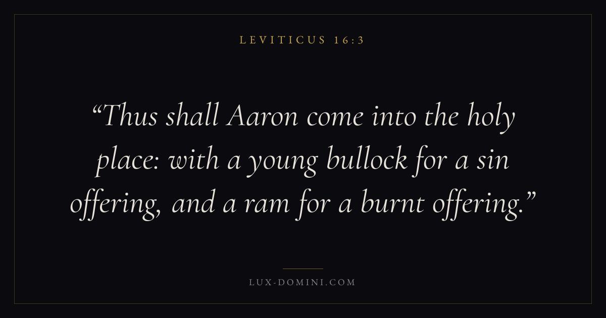 Thus shall Aaron come into the holy place: with a young bullock for a sin offering, and a ram for a burnt offering.