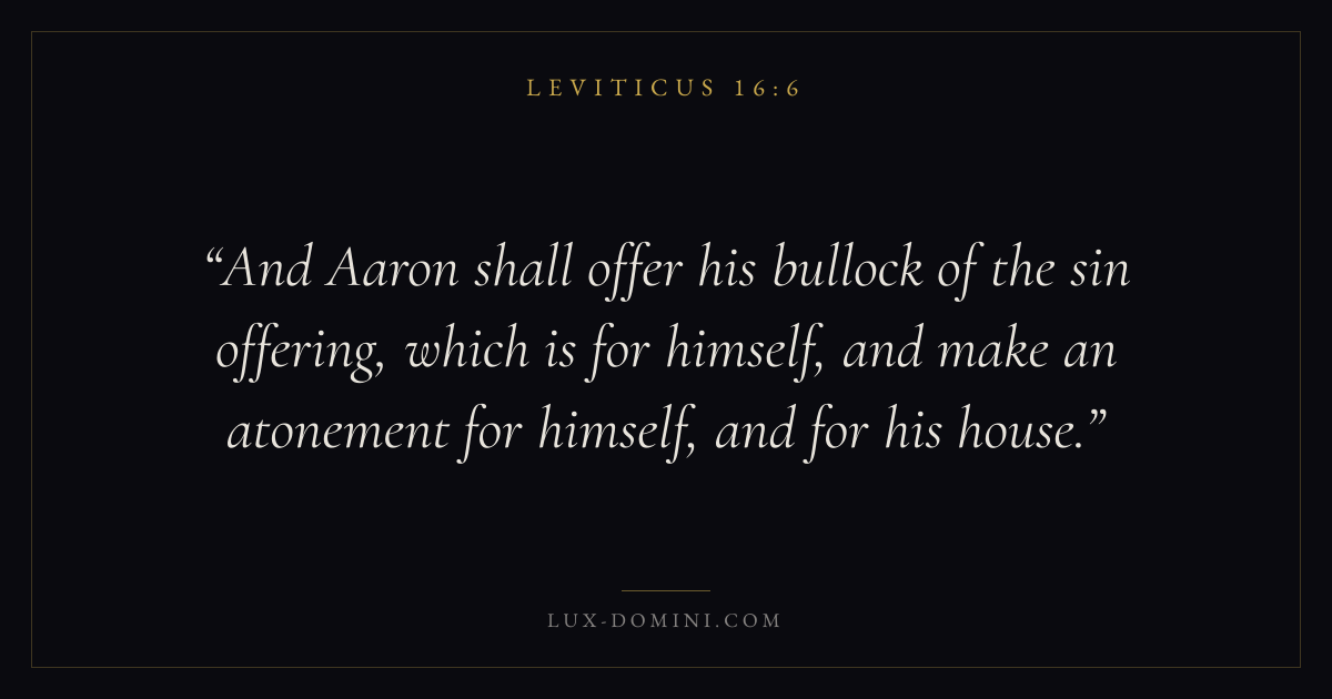 And Aaron shall offer his bullock of the sin offering, which is for himself, and make an atonement for himself, and for his house.