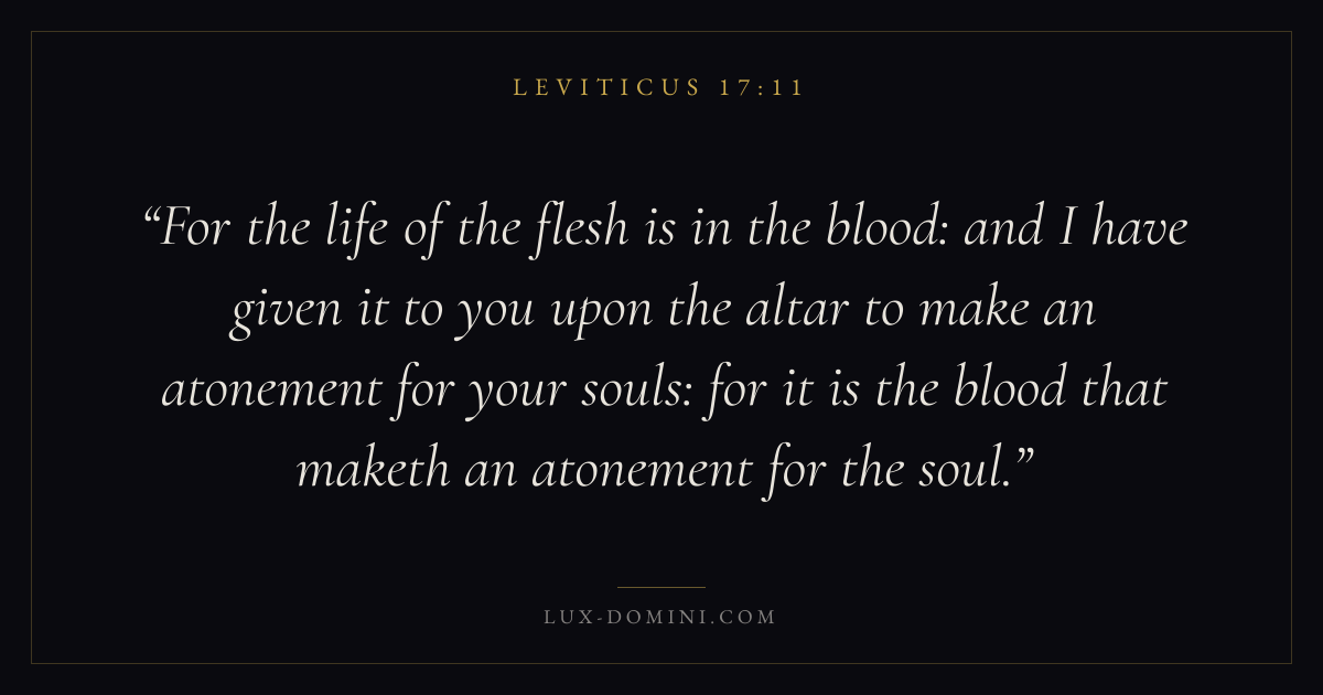 For the life of the flesh is in the blood: and I have given it to you upon the altar to make an atonement for your souls: for it is the blood that maketh an atonement for the soul.