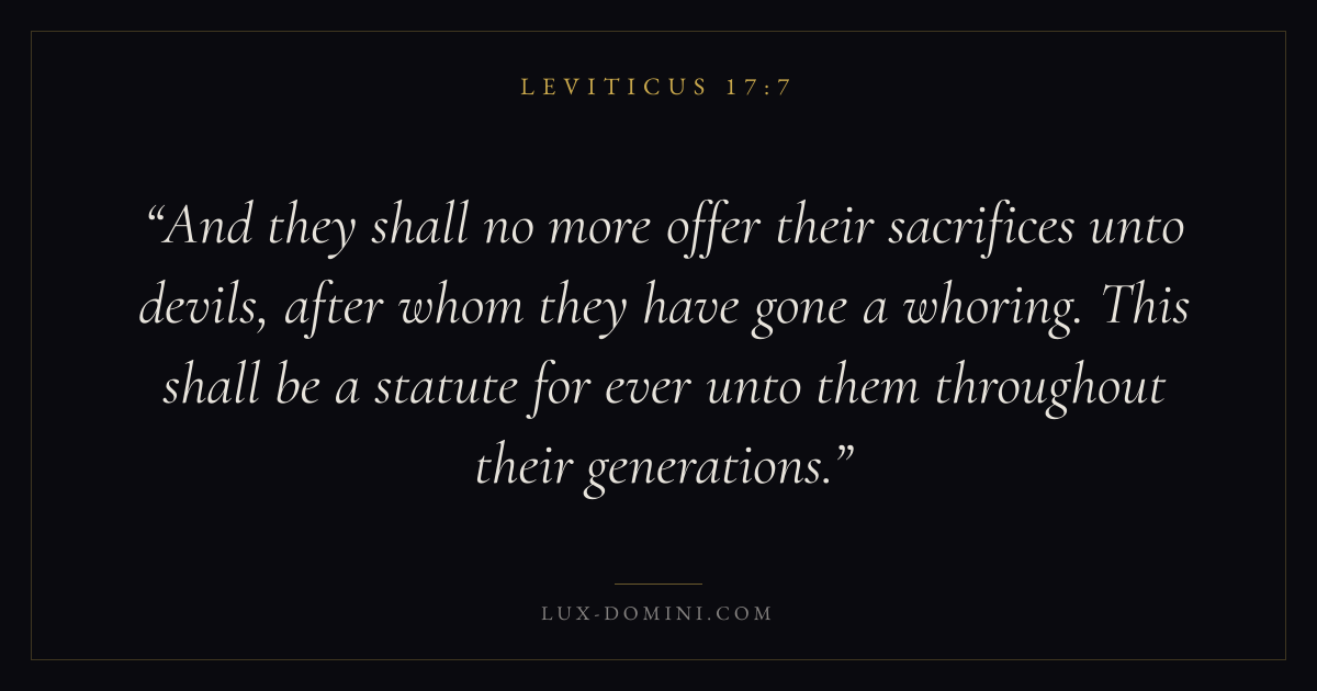 And they shall no more offer their sacrifices unto devils, after whom they have gone a whoring. This shall be a statute for ever unto them throughout their generations.