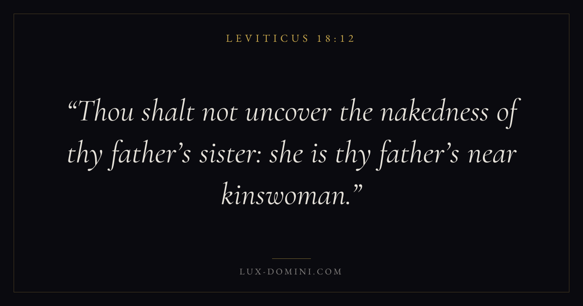 Thou shalt not uncover the nakedness of thy father’s sister: she is thy father’s near kinswoman.