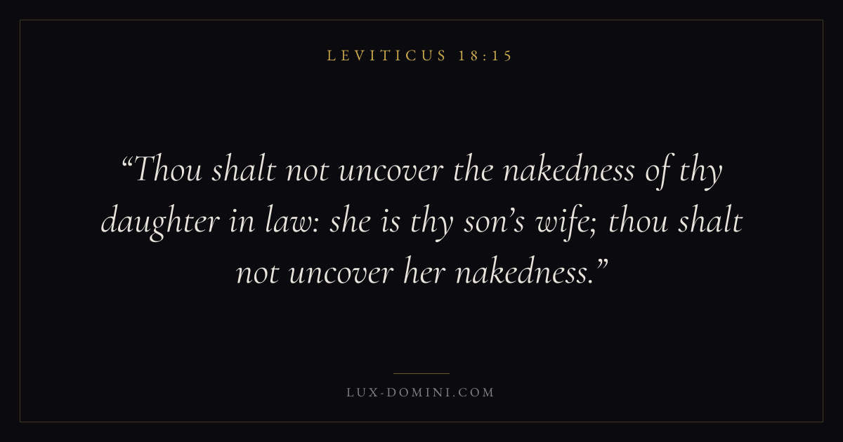 Thou shalt not uncover the nakedness of thy daughter in law: she is thy son’s wife; thou shalt not uncover her nakedness.