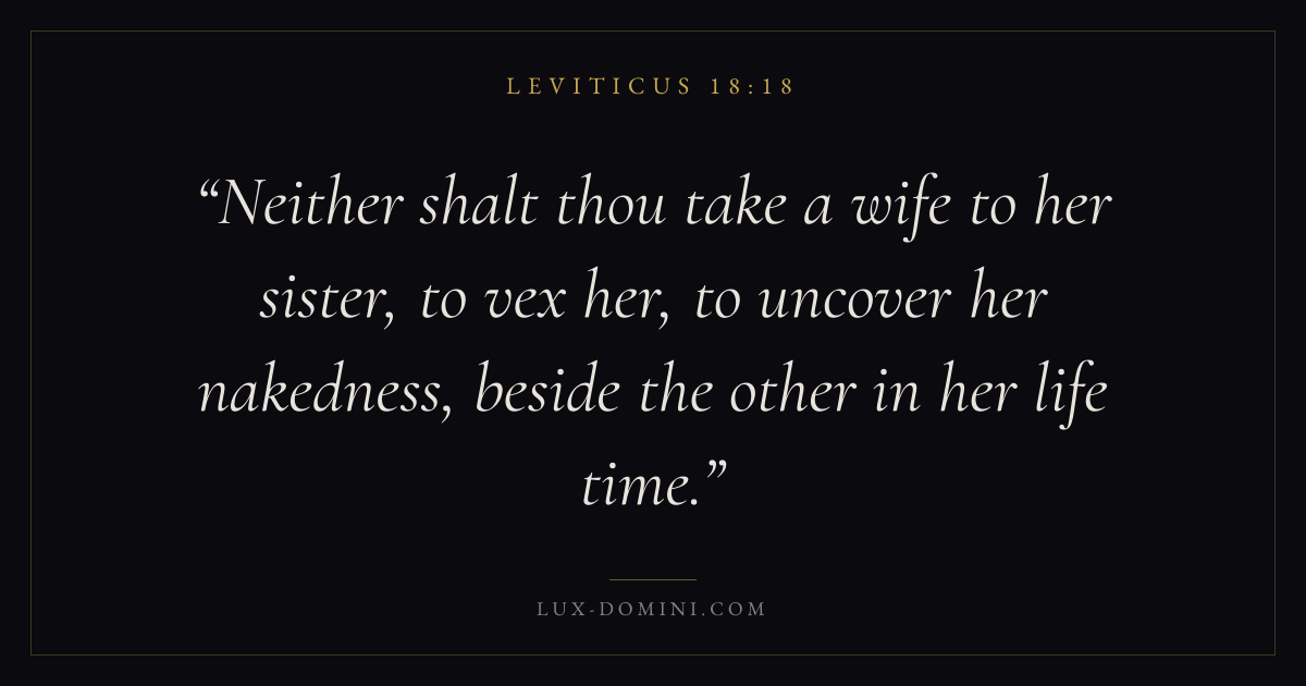 Neither shalt thou take a wife to her sister, to vex her, to uncover her nakedness, beside the other in her life time.