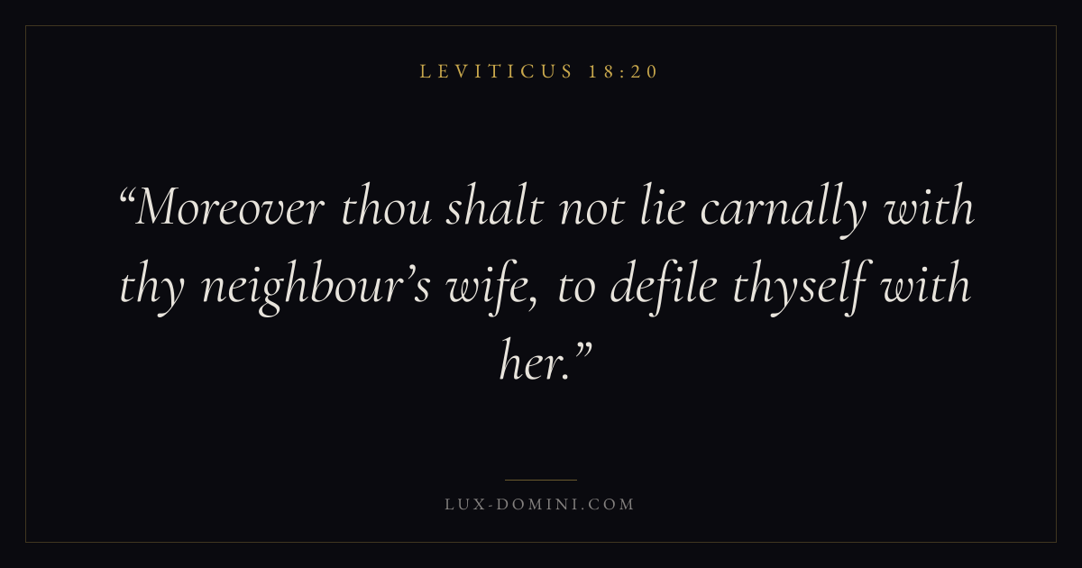 Moreover thou shalt not lie carnally with thy neighbour’s wife, to defile thyself with her.