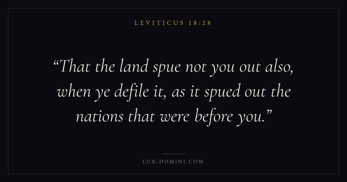 That the land spue not you out also, when ye defile it, as it spued out the nations that were before you.