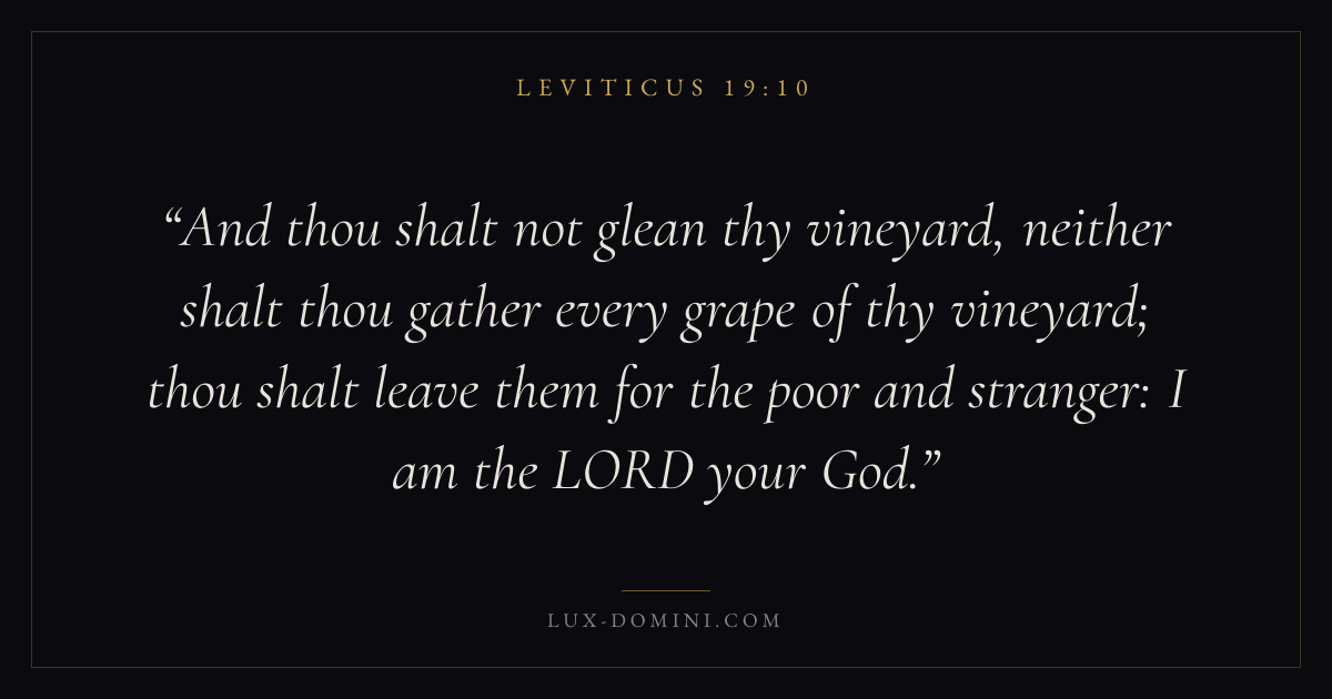 And thou shalt not glean thy vineyard, neither shalt thou gather every grape of thy vineyard; thou shalt leave them for the poor and stranger: I am the LORD your God.
