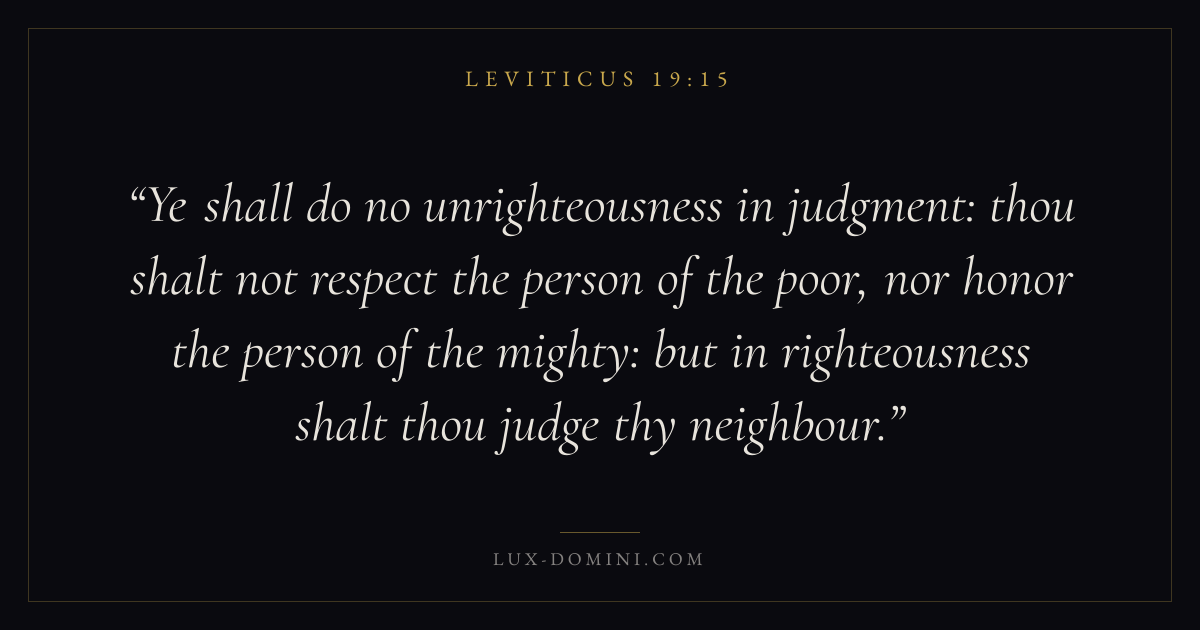 Ye shall do no unrighteousness in judgment: thou shalt not respect the person of the poor, nor honor the person of the mighty: but in righteousness shalt thou judge thy neighbour.