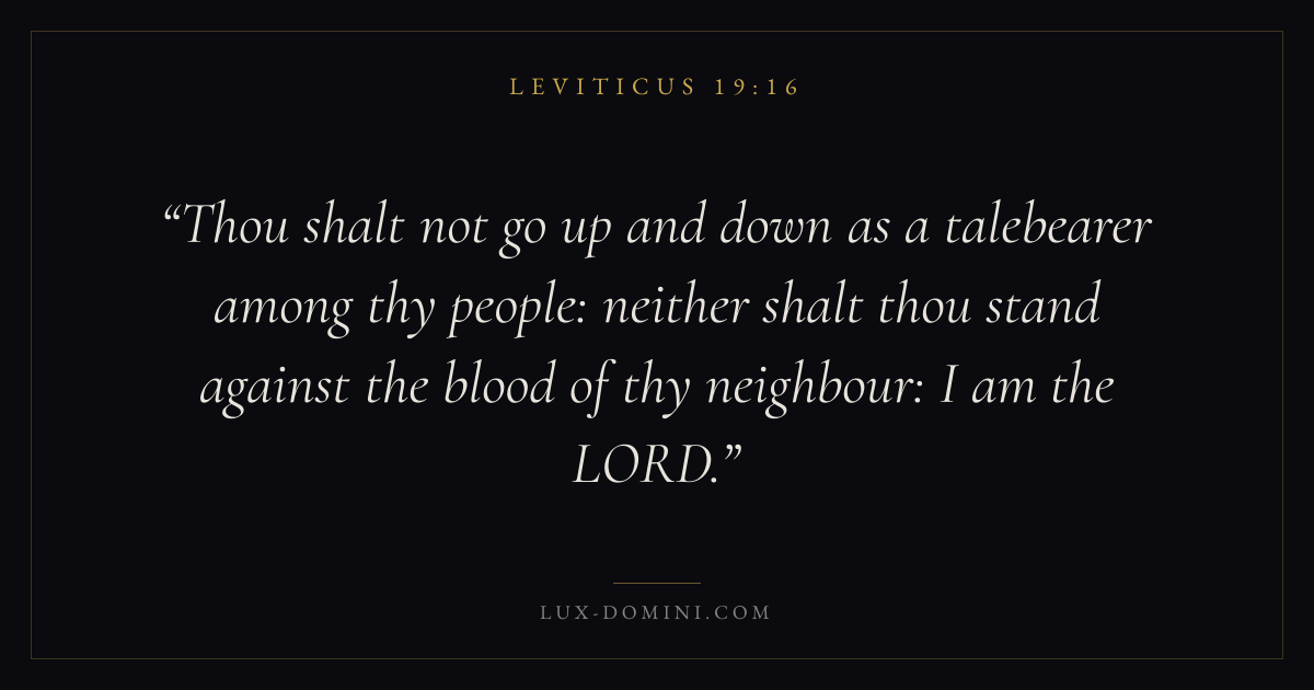 Thou shalt not go up and down as a talebearer among thy people: neither shalt thou stand against the blood of thy neighbour: I am the LORD.