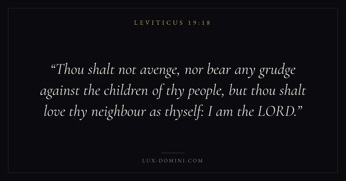 Thou shalt not avenge, nor bear any grudge against the children of thy people, but thou shalt love thy neighbour as thyself: I am the LORD.