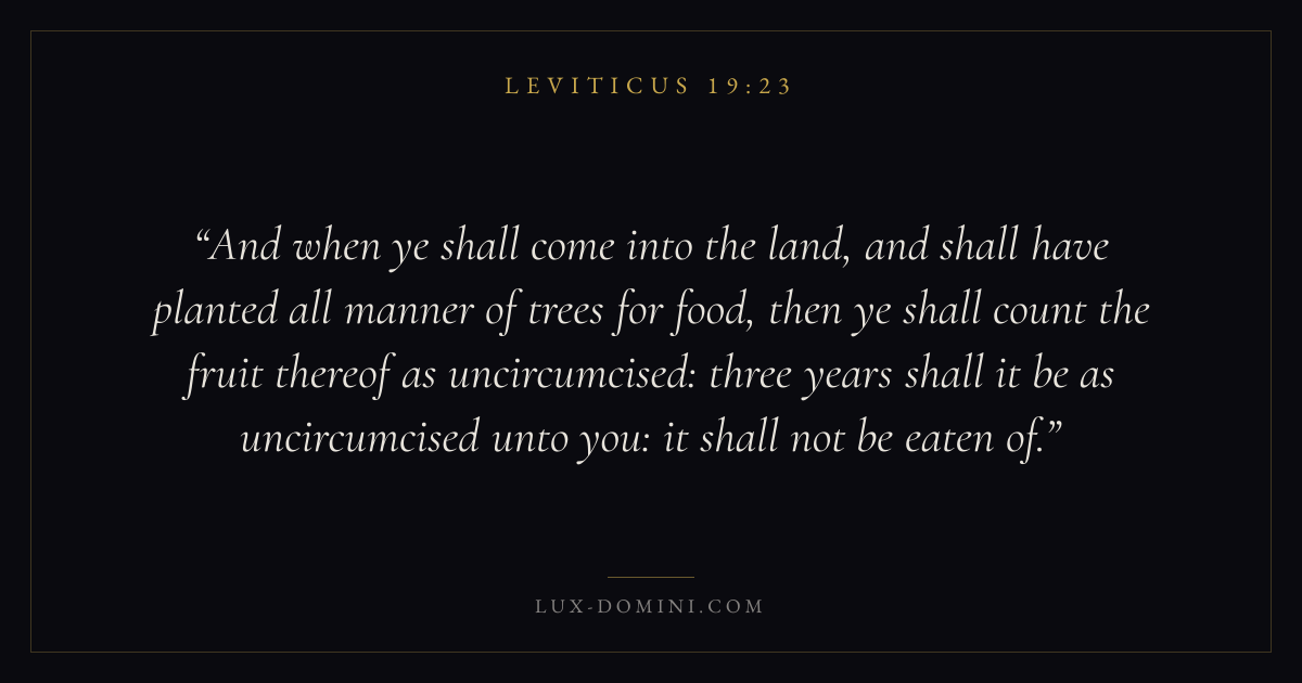 And when ye shall come into the land, and shall have planted all manner of trees for food, then ye shall count the fruit thereof as uncircumcised: three years shall it be as uncircumcised unto you: it shall not be eaten of.