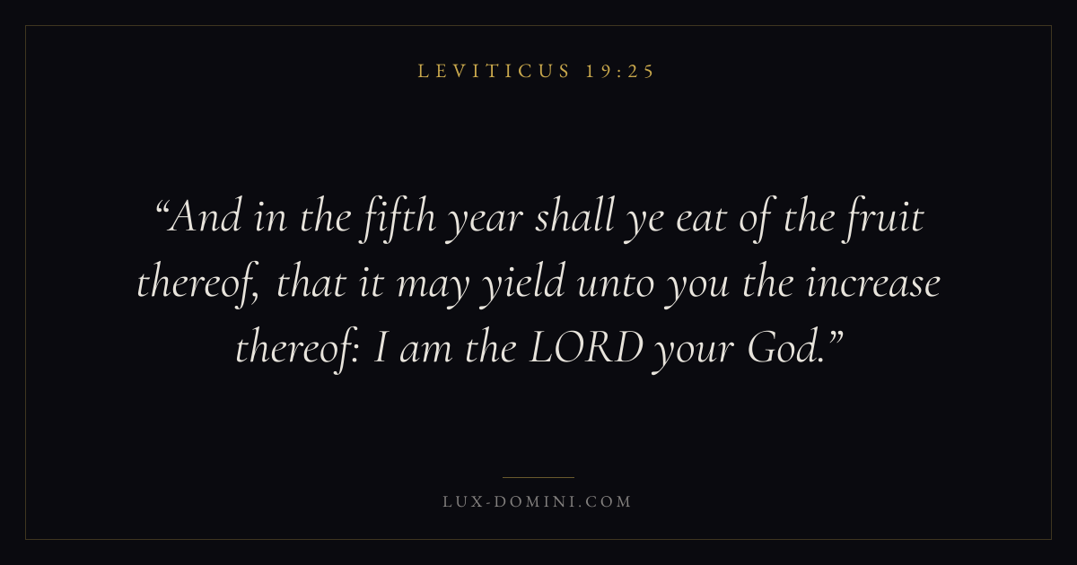 And in the fifth year shall ye eat of the fruit thereof, that it may yield unto you the increase thereof: I am the LORD your God.