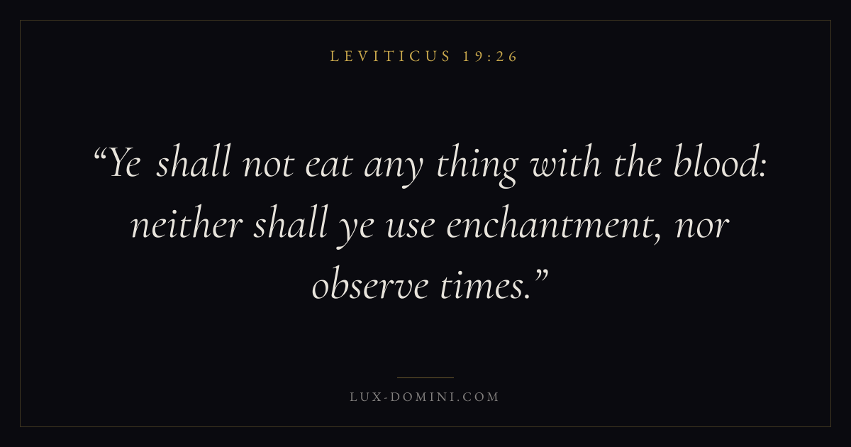 Ye shall not eat any thing with the blood: neither shall ye use enchantment, nor observe times.