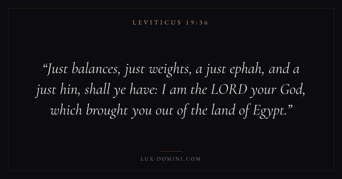 Just balances, just weights, a just ephah, and a just hin, shall ye have: I am the LORD your God, which brought you out of the land of Egypt.
