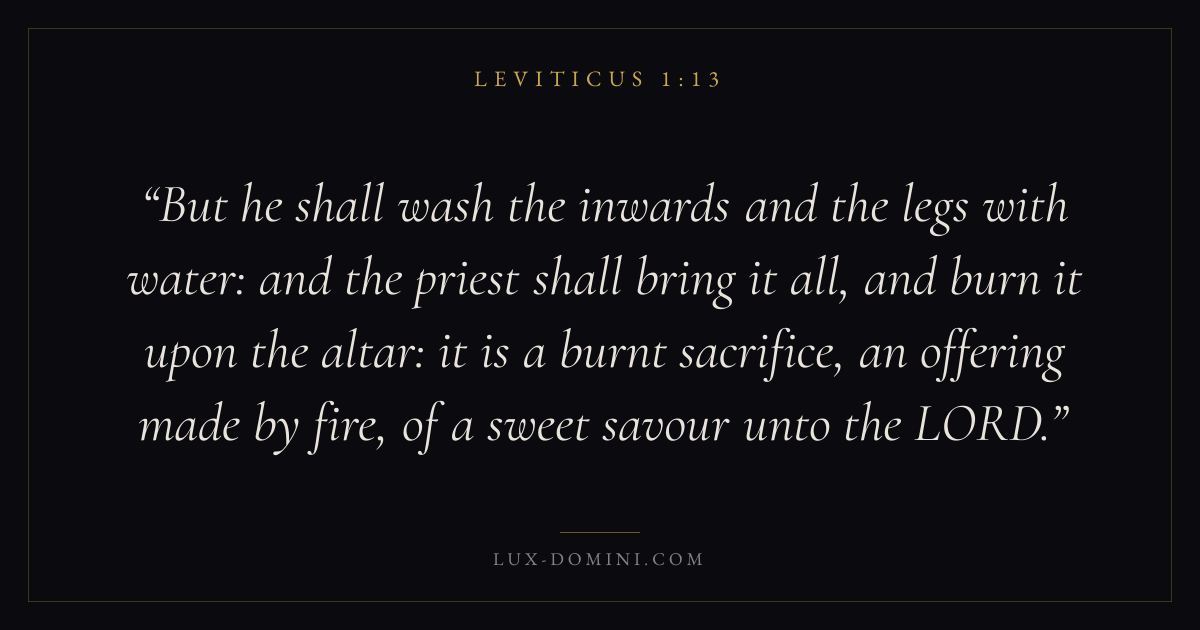 But he shall wash the inwards and the legs with water: and the priest shall bring it all, and burn it upon the altar: it is a burnt sacrifice, an offering made by fire, of a sweet savour unto the LORD.