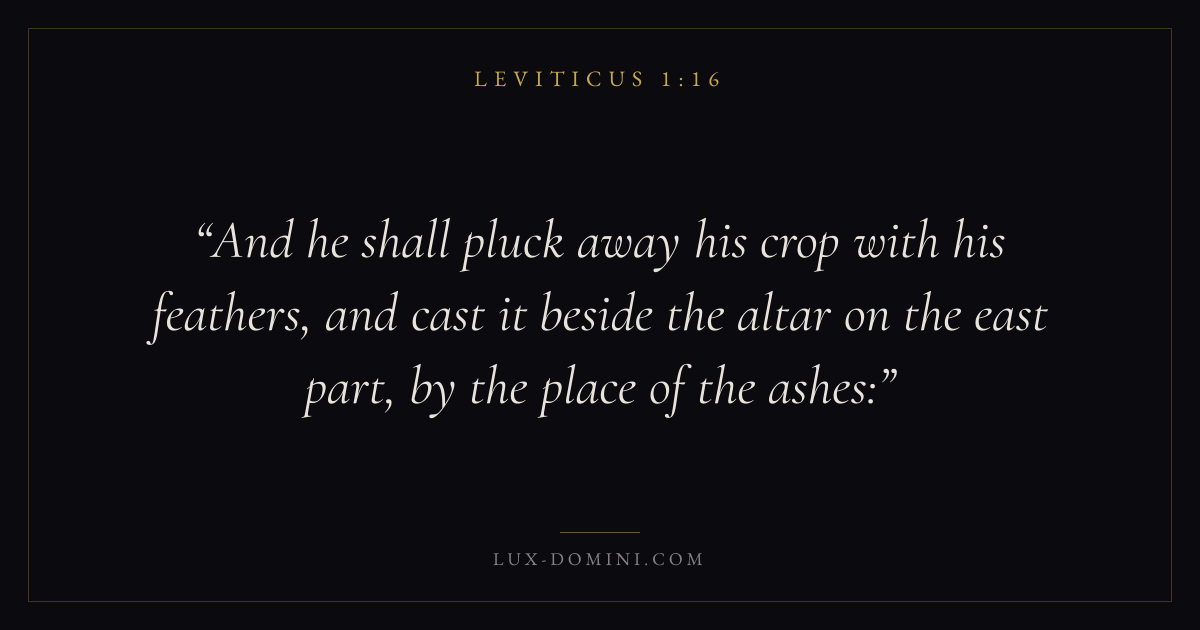And he shall pluck away his crop with his feathers, and cast it beside the altar on the east part, by the place of the ashes: