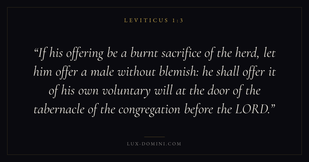 If his offering be a burnt sacrifice of the herd, let him offer a male without blemish: he shall offer it of his own voluntary will at the door of the tabernacle of the congregation before the LORD.