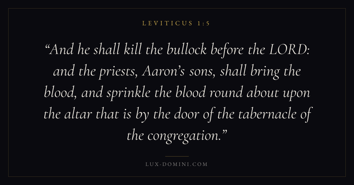 And he shall kill the bullock before the LORD: and the priests, Aaron’s sons, shall bring the blood, and sprinkle the blood round about upon the altar that is by the door of the tabernacle of the congregation.