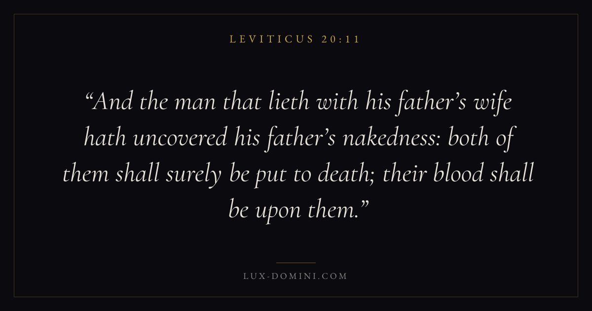 And the man that lieth with his father’s wife hath uncovered his father’s nakedness: both of them shall surely be put to death; their blood shall be upon them.