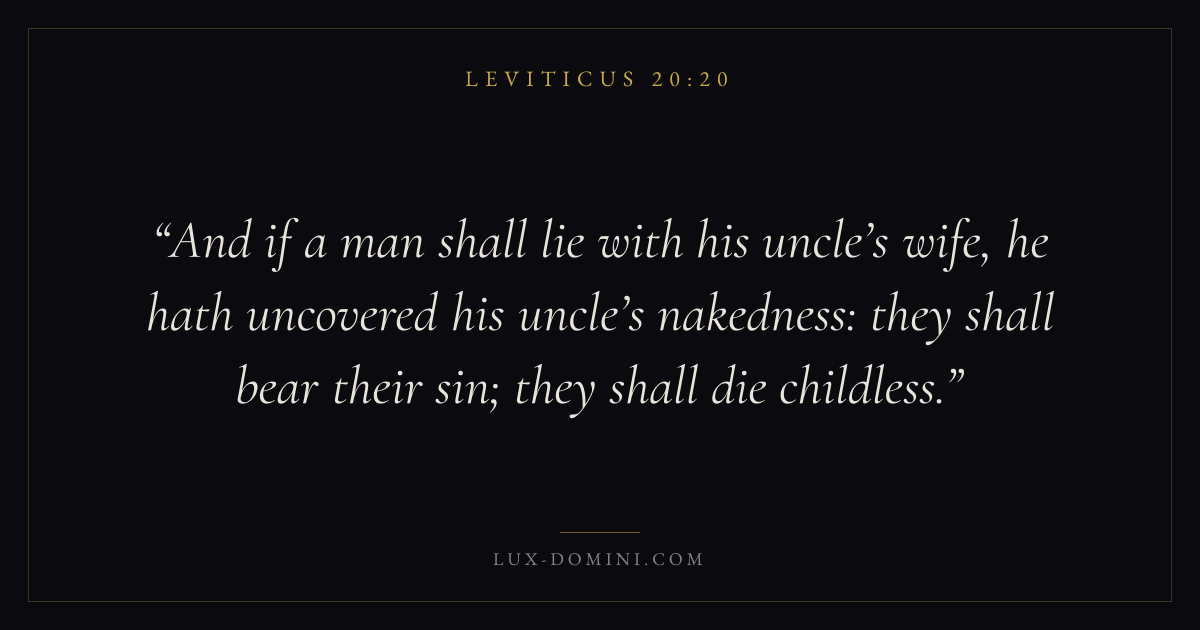 And if a man shall lie with his uncle’s wife, he hath uncovered his uncle’s nakedness: they shall bear their sin; they shall die childless.