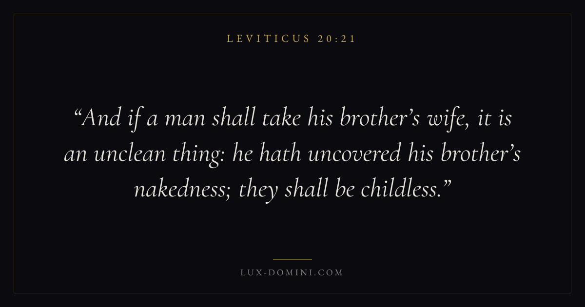 And if a man shall take his brother’s wife, it is an unclean thing: he hath uncovered his brother’s nakedness; they shall be childless.