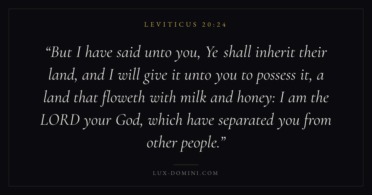 But I have said unto you, Ye shall inherit their land, and I will give it unto you to possess it, a land that floweth with milk and honey: I am the LORD your God, which have separated you from other people.