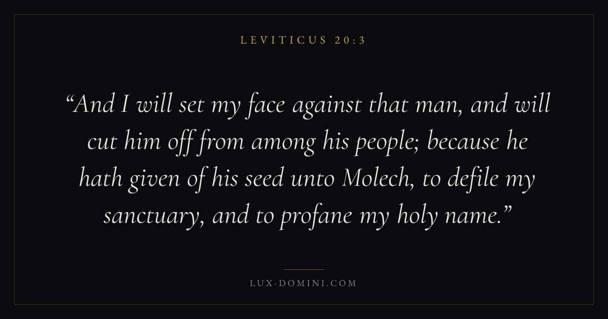 And I will set my face against that man, and will cut him off from among his people; because he hath given of his seed unto Molech, to defile my sanctuary, and to profane my holy name.