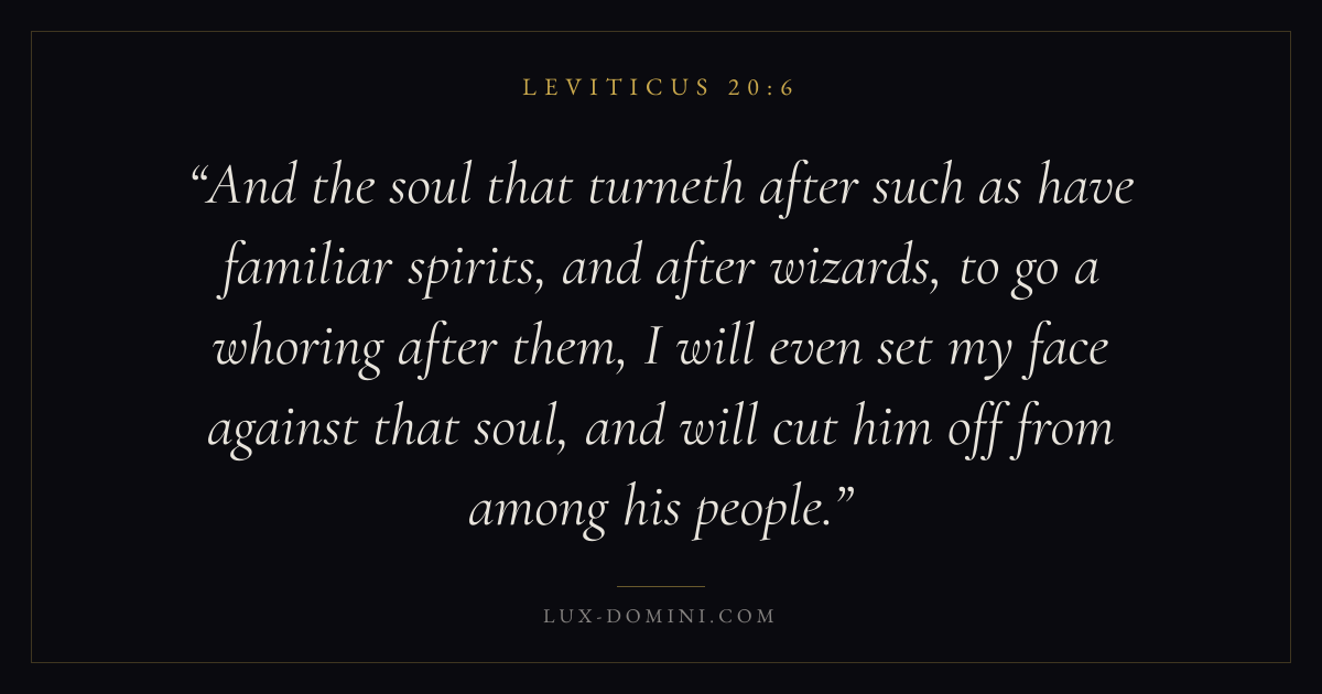 And the soul that turneth after such as have familiar spirits, and after wizards, to go a whoring after them, I will even set my face against that soul, and will cut him off from among his people.