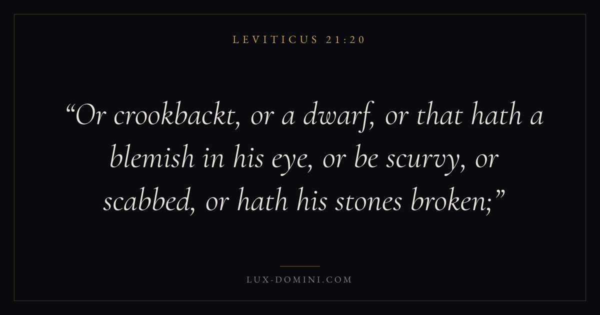 Or crookbackt, or a dwarf, or that hath a blemish in his eye, or be scurvy, or scabbed, or hath his stones broken;