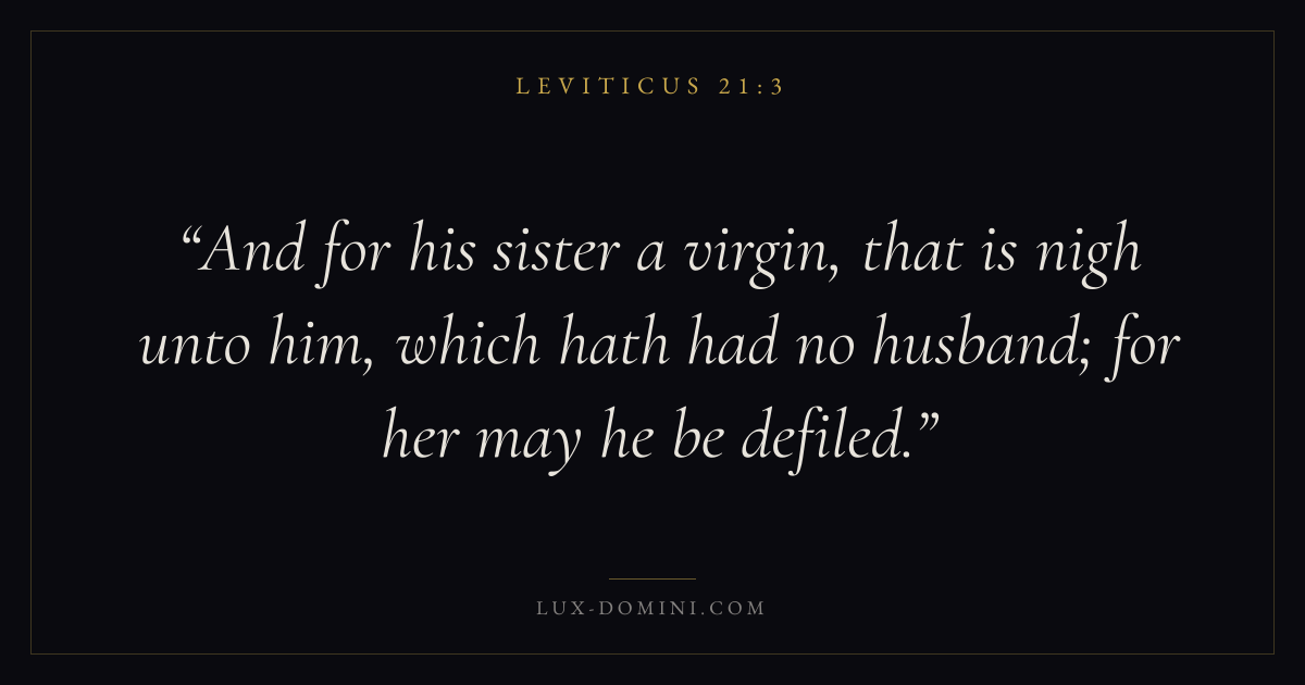 And for his sister a virgin, that is nigh unto him, which hath had no husband; for her may he be defiled.