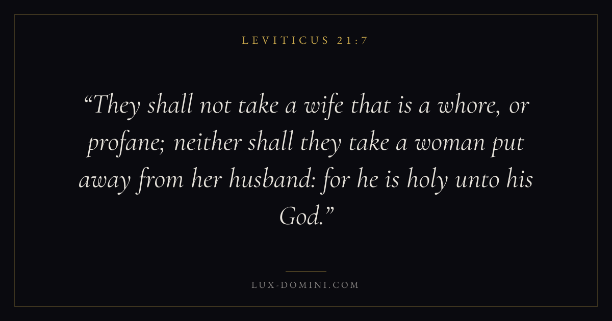 They shall not take a wife that is a whore, or profane; neither shall they take a woman put away from her husband: for he is holy unto his God.