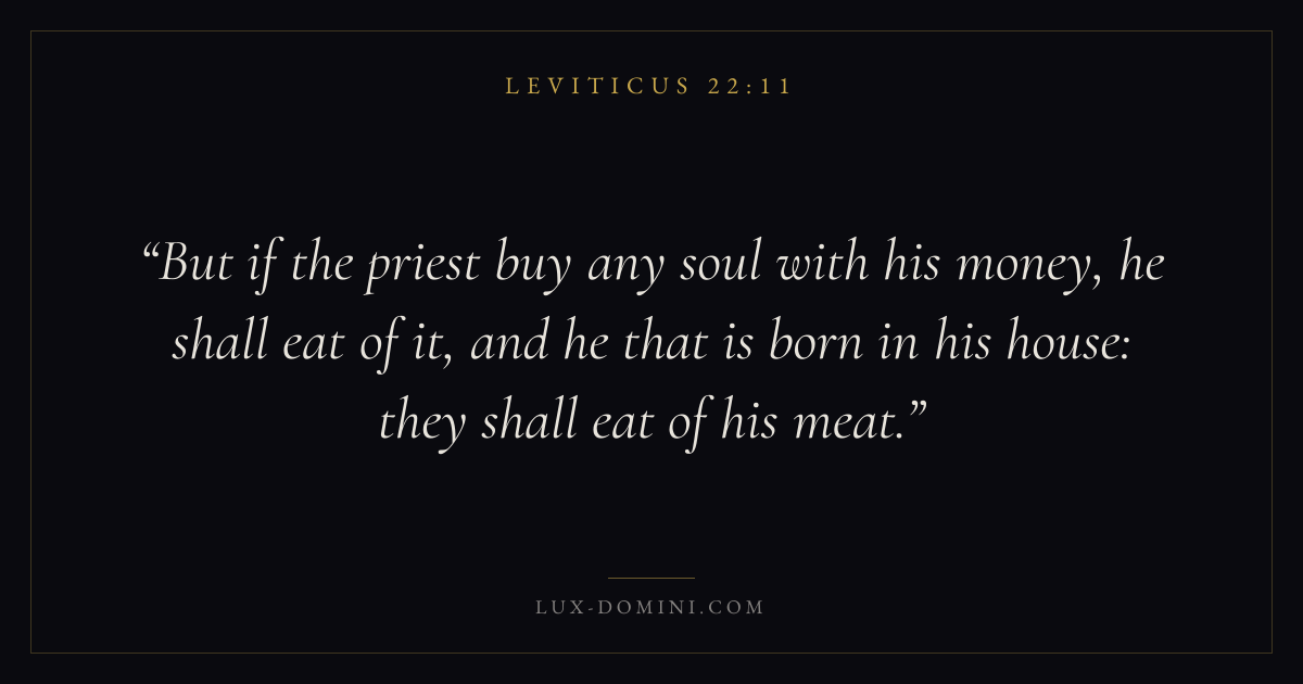 But if the priest buy any soul with his money, he shall eat of it, and he that is born in his house: they shall eat of his meat.