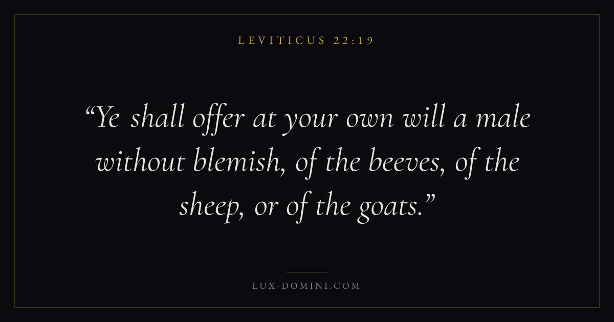 Ye shall offer at your own will a male without blemish, of the beeves, of the sheep, or of the goats.