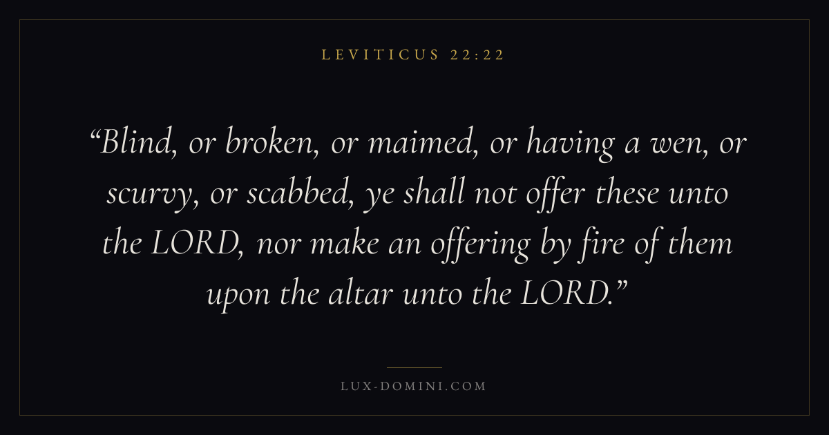 Blind, or broken, or maimed, or having a wen, or scurvy, or scabbed, ye shall not offer these unto the LORD, nor make an offering by fire of them upon the altar unto the LORD.