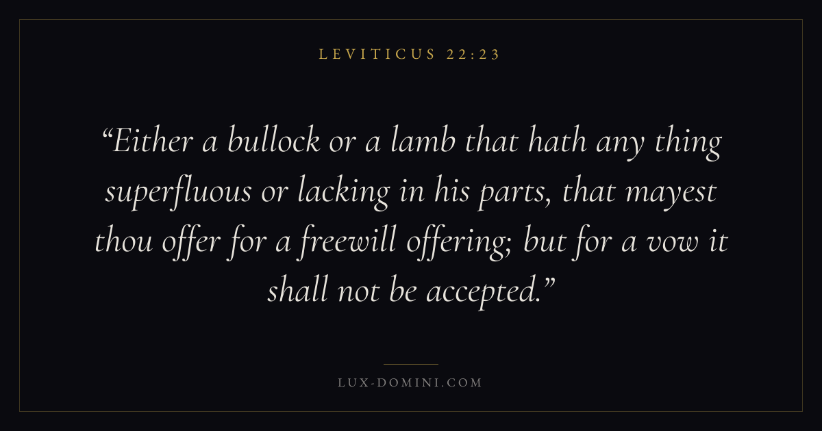 Either a bullock or a lamb that hath any thing superfluous or lacking in his parts, that mayest thou offer for a freewill offering; but for a vow it shall not be accepted.