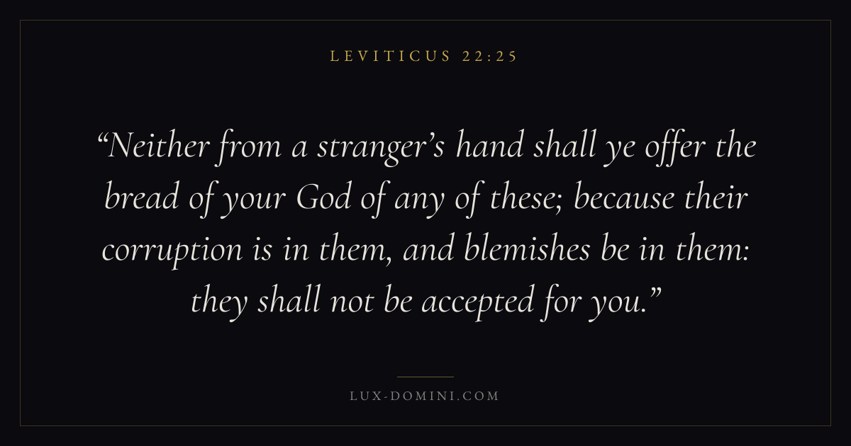 Neither from a stranger’s hand shall ye offer the bread of your God of any of these; because their corruption is in them, and blemishes be in them: they shall not be accepted for you.